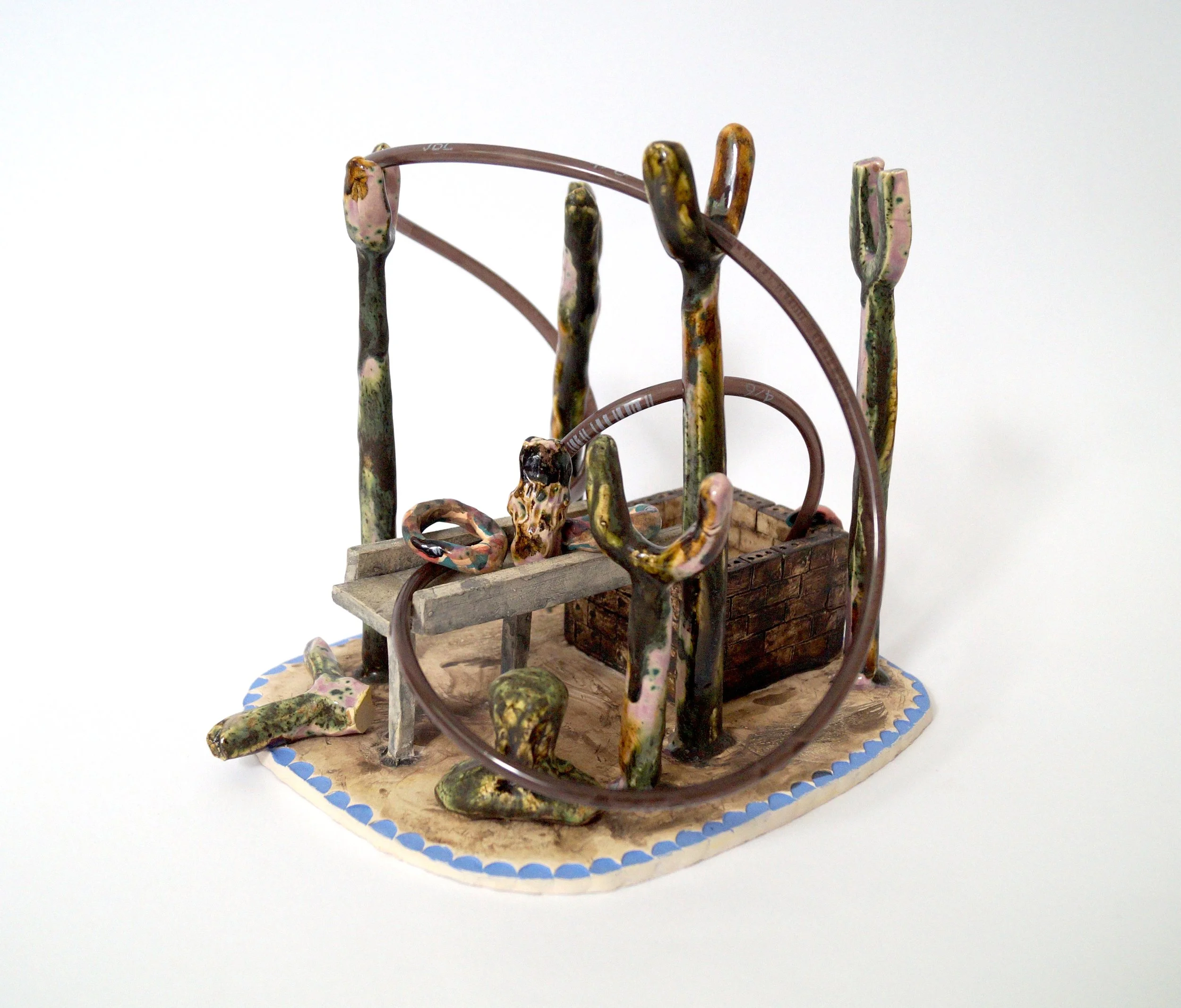 Small Town / 2024 / ceramic, wood, metal, cables / 16x14x21cm